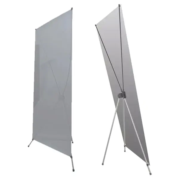 Display banner tipo X ajustable con barillas de aluminio